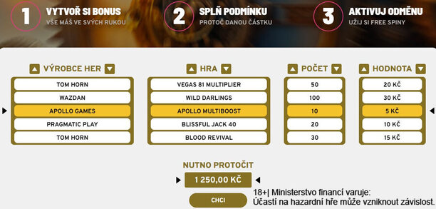 Volba bonusu přitom není nikterak uživatelsky složitá. Skládá se z výběru celkem čtyř parametrů, po jejichž vložení se vám zobrazí výsledná protáčecí podmínka, kterou je zapotřebí splnit. Návod, jak toho dosáhnout, vám přinášíme na následujících řádcích.
