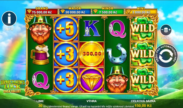 Leprechaun je bájný skřítek, který je neodmyslitelně spojen s dnem sv. Patrika, a to proto, že jeho historie také sahá do Irska. Leprechaunovo štěstí je název dalšího automatu, který si na tento den, ale i kdykoliv jindy, můžete zahrát. Pětiválcový automat od výrobce Playtech nabízí 30 výherních linií a několik zajímavých funkcí. První je symbol wild, který nahrazuje všechny symboly s výjimkou symbolů Cash Collect, Hotovostní cena, Diamant a Free spiny.