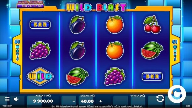 Jestliže preferujete klasické automaty s ovocnými symboly, pak si Wild Blast určitě zamilujete. Potěší i ty, kteří rádi hrají za nižší sázky, jelikož lze roztočit i za 1 Kč a to je velmi blízko k automatům za haléře. I když se jedná o klasický automat, nabízí dvě bonusové funkce. Wild symbol je takovou klasikou – v této hře vám však až zosminásobí výhru. Výhodou je i bonusová hra, která může vytvořit další výherní kombinace. Ocenit musíme i poměrně vysokou výhernost, která činí 97,03 %.